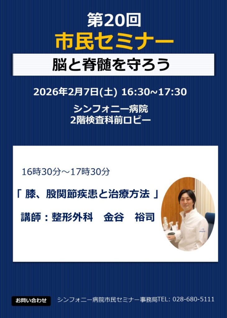 2026年2月7日(土)16:30~、第20回市民セミナーをシンフォニー病院で開催します!